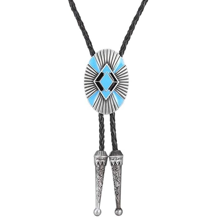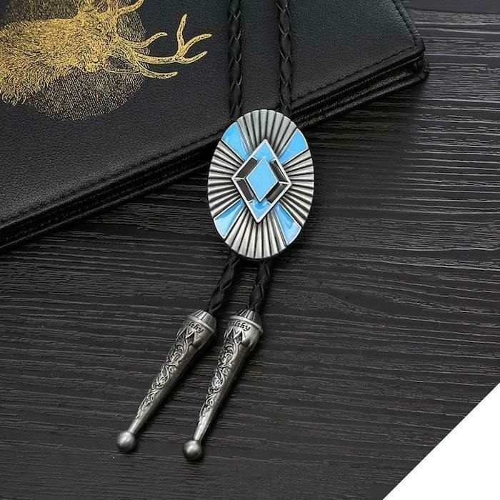 Bolo tie western slips er et karakteristisk design, der tilbyder en unik amerikansk indisk stil. Den adskiller sig med stil og elegance gennem sine graveringer og sin uforlignelige blå farve.