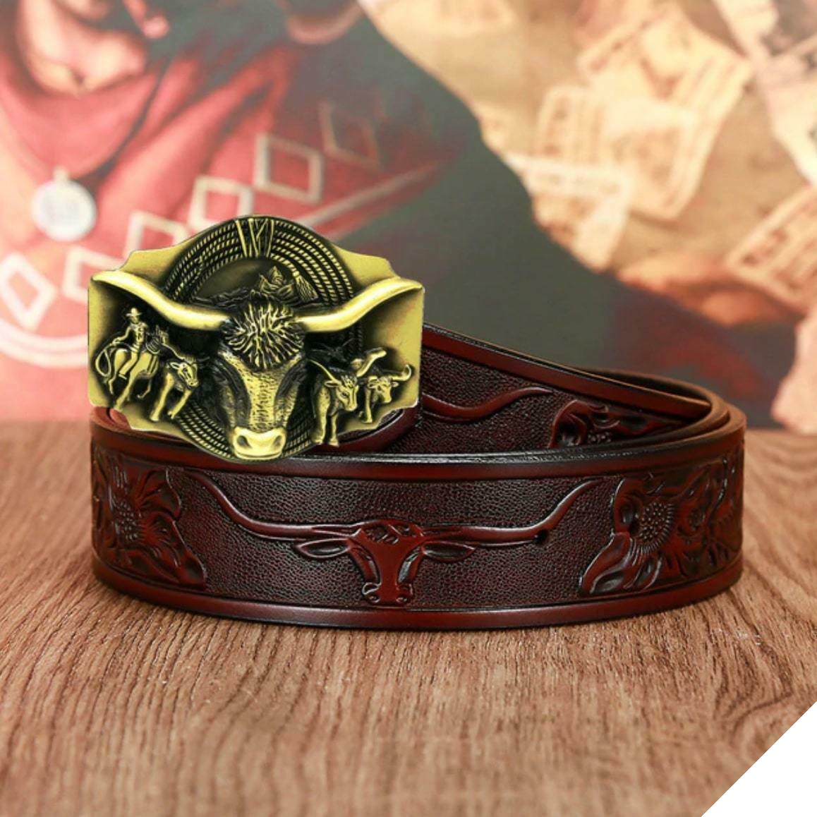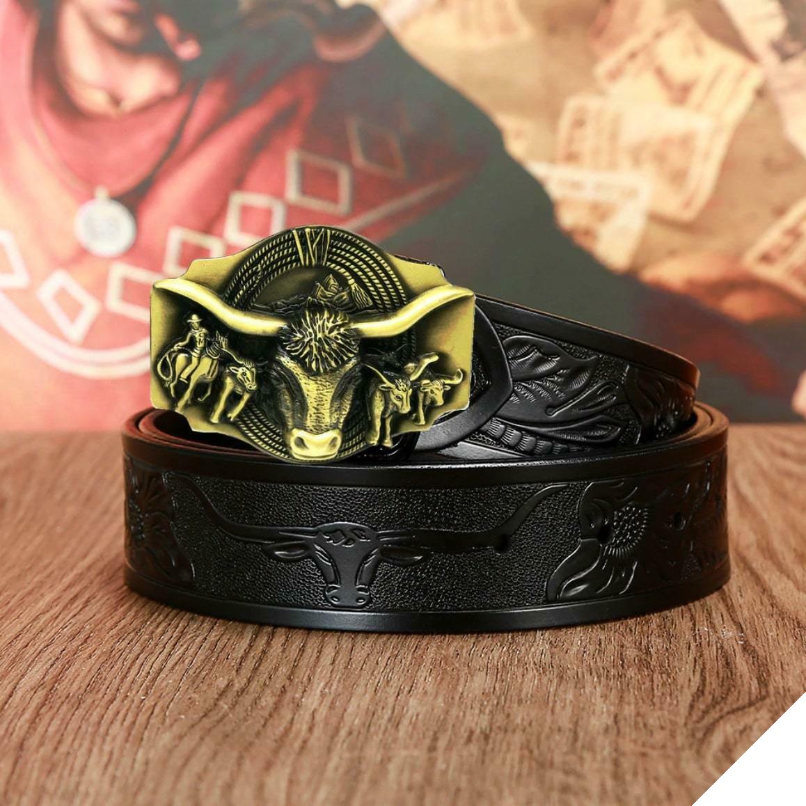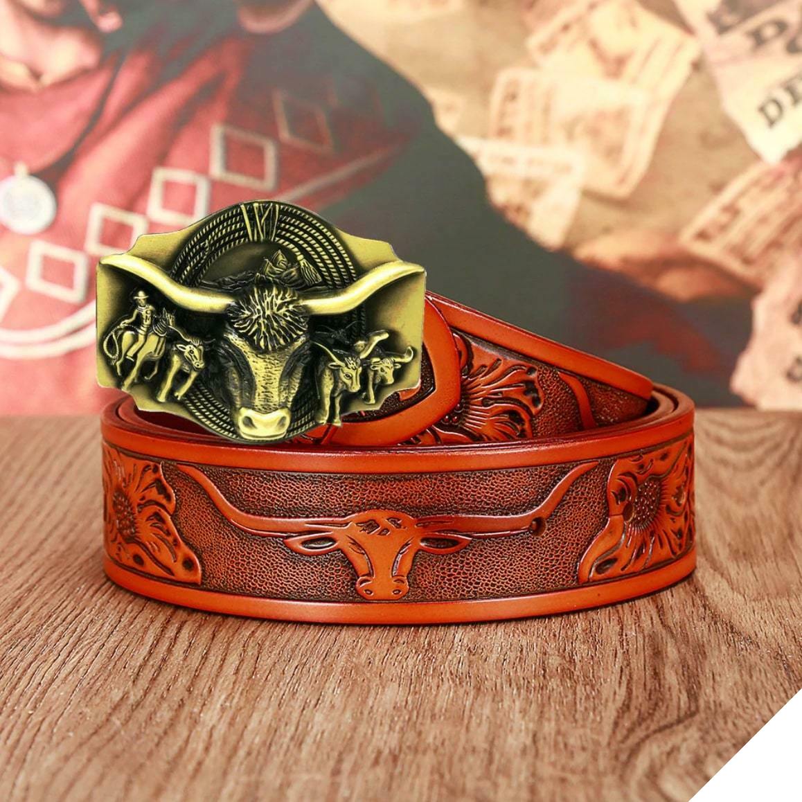 Det unikke og forfinede design af dette country bælte til herre jeans er inspireret af et af de berømte symboler fra Det Vilde Vesten: tyren. De detaljerede afslutninger minder om cowboys-universet.