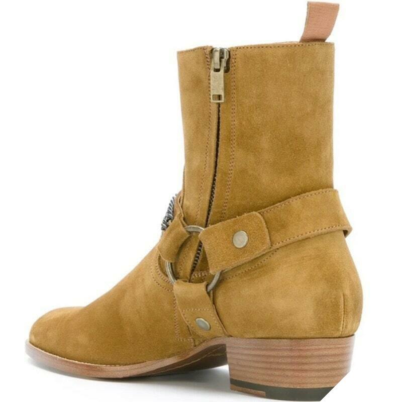 Cowboy stil hælstøvler tilbyder elegance og ægthed med et landligt udseende. Håndlavet af ægte læder af høj kvalitet, giver de en vintage ruskindseffekt med et vestligt præg, ideel til western-entusiaster.