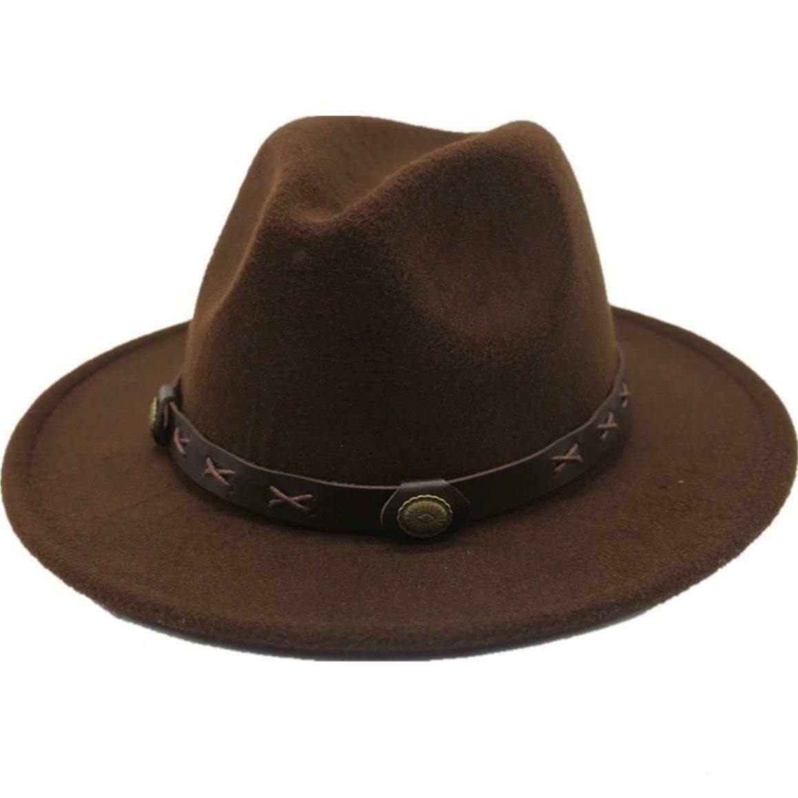 H4 Filt cowboy-hatten i brun farve udståler stil og autenticitet. Den er lavet af premium uld filt og har et ægte læderbånd, der giver en elegance, der er værdig til de største westerns.