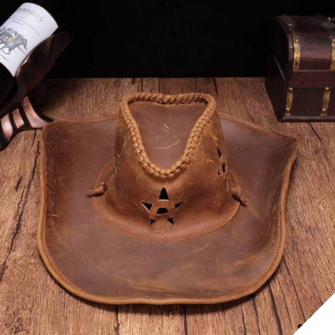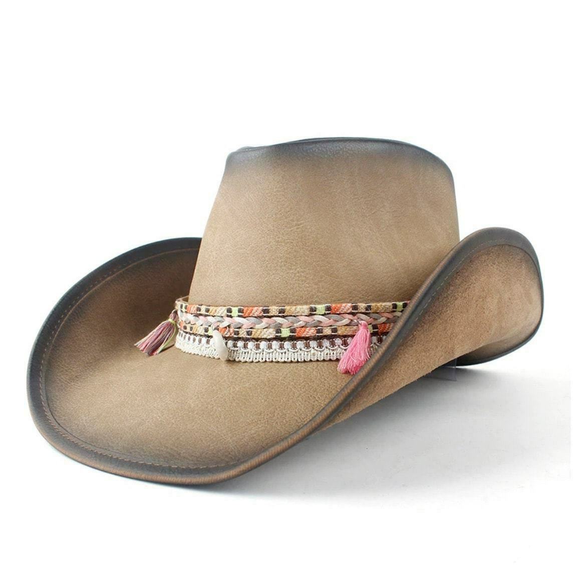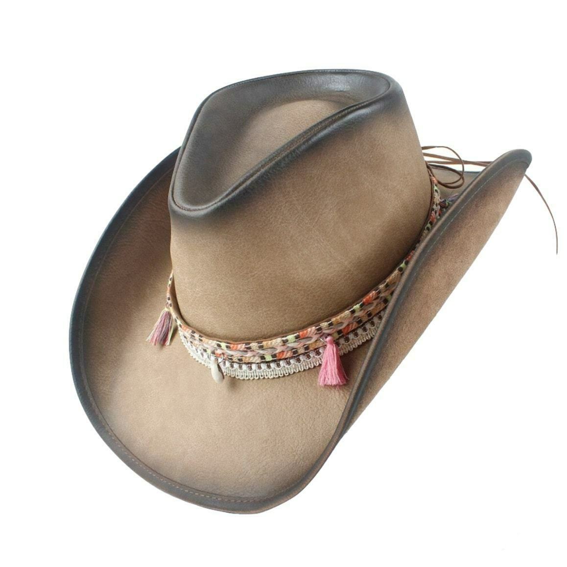 Den læder cowboy hat er en klassisk og traditionel model inden for cowboy-stil. Den kombinerer elegance, raffinement og håndværk og passer perfekt til enhver påklædning.