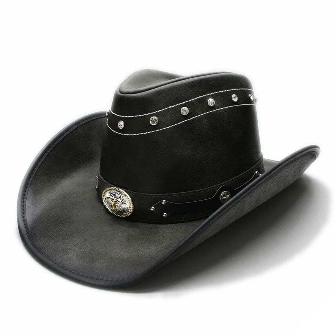 Cowboy-hatten i læder til mænd repræsenterer den karakteristiske stil fra Det Vilde Vesten. Med sin sorte farve og maskuline udseende vil den bringe alle moderne cowboys i overensstemmelse.