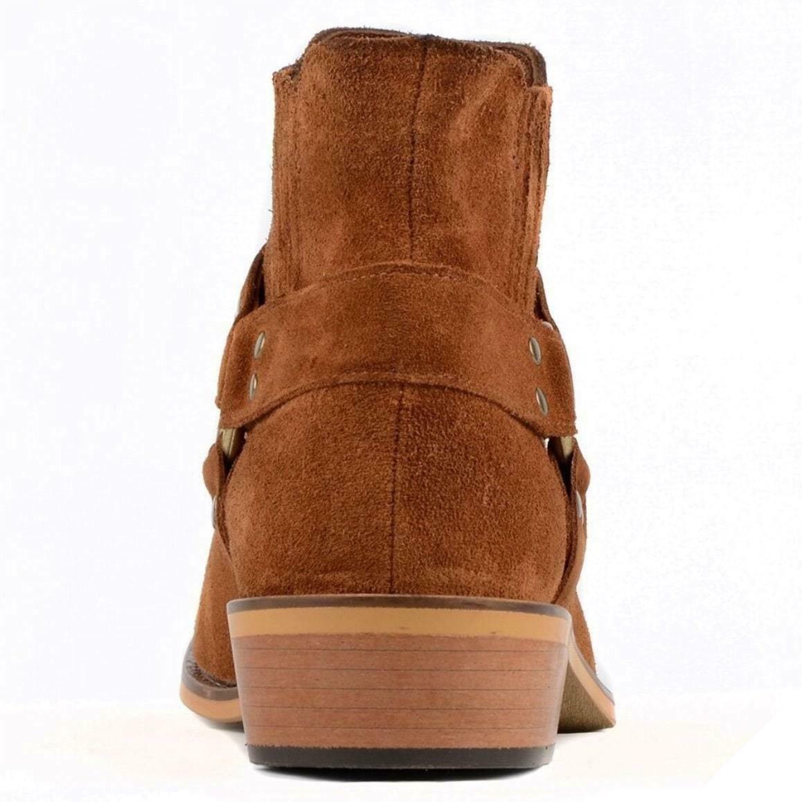 Vores Western style ruskind støvler har en unik og elegant sommerdesign, der minder om de mange vestlige film. Disse håndlavede støvler i ægte kvalitetslæder skiller sig ud med deres camel farve, og giver dig udseendet af en ægte vestlig legende.