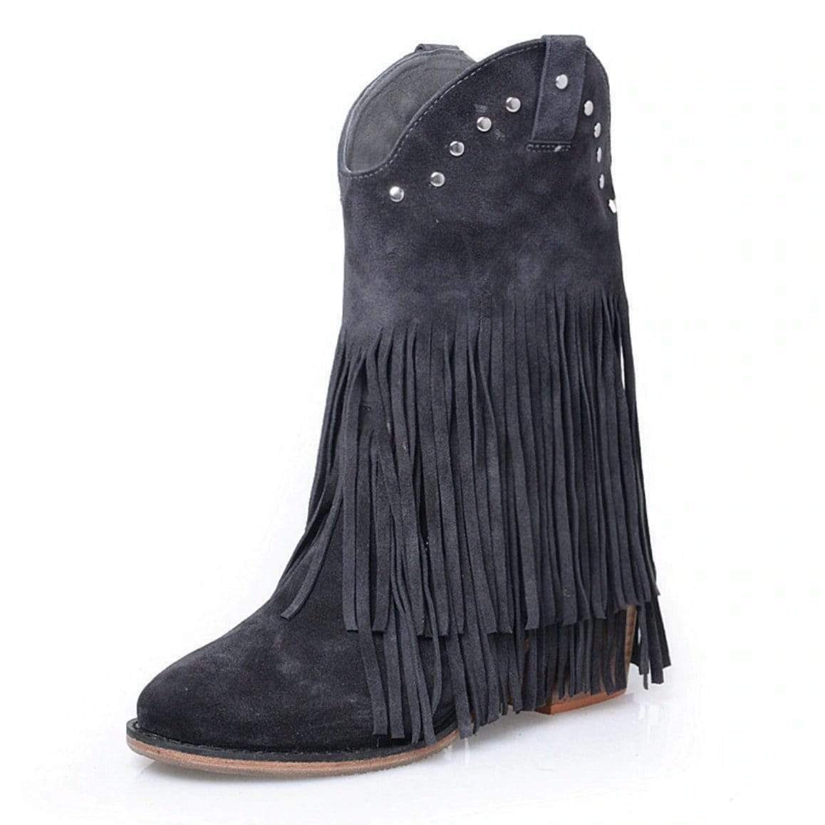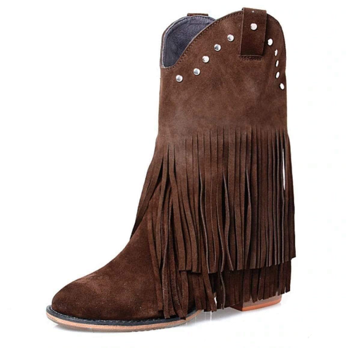 Disse cowboy støvler i ruskind til kvinder udstråler på smagfuld vis western-stilen. De er håndlavet af førsteklasses ruskindslæder, og skiller sig ud med deres symboliske frynser fra cowboys univers.