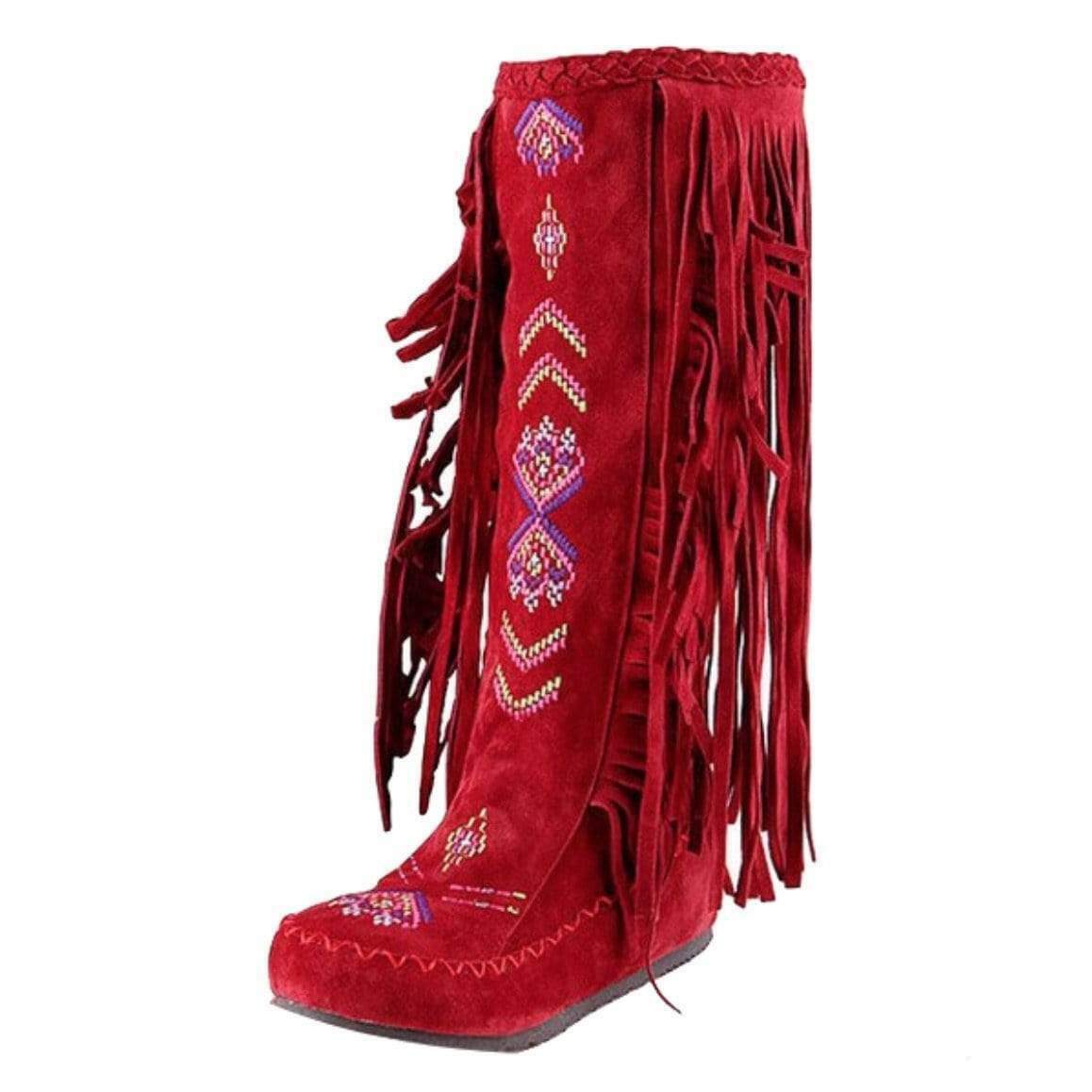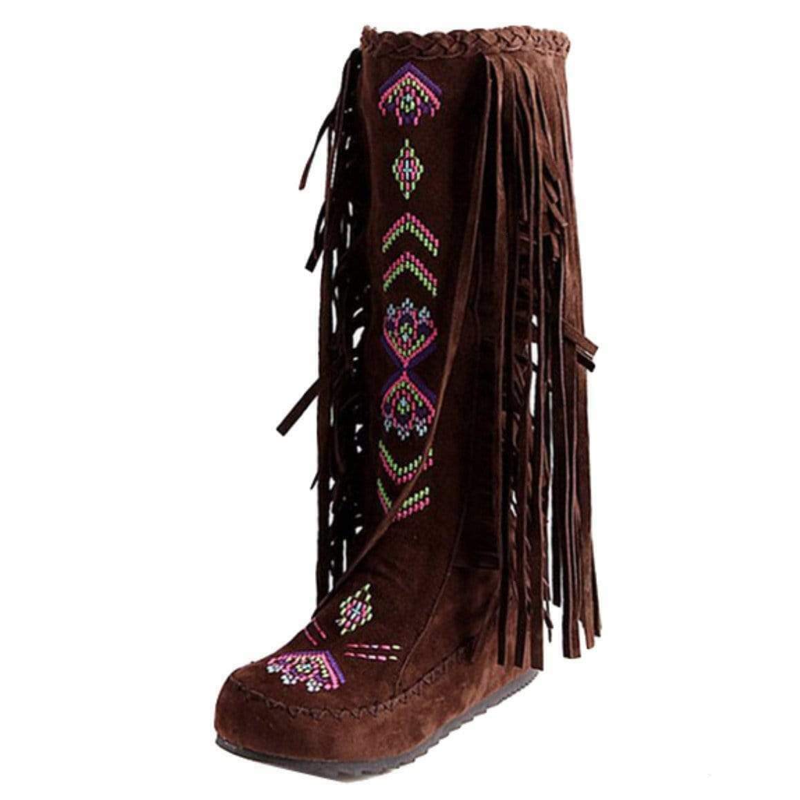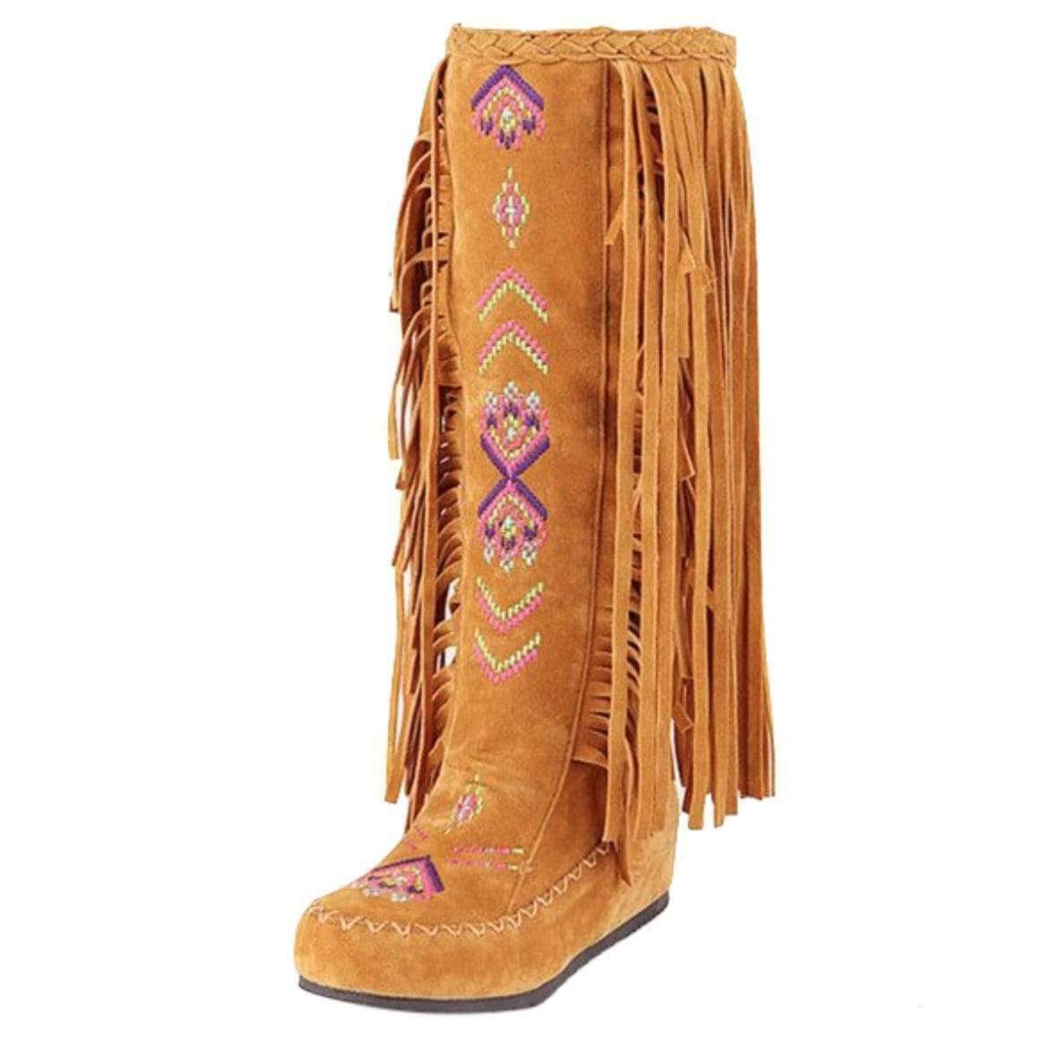 Cowgirl Fringe Støvler til kvinder fremhæver den amerikanske indianske stil med fremragende kvalitet. Deres ruskind udseende og karakteristiske frynser fra det vestlige univers vil glæde elskere af cowboys.