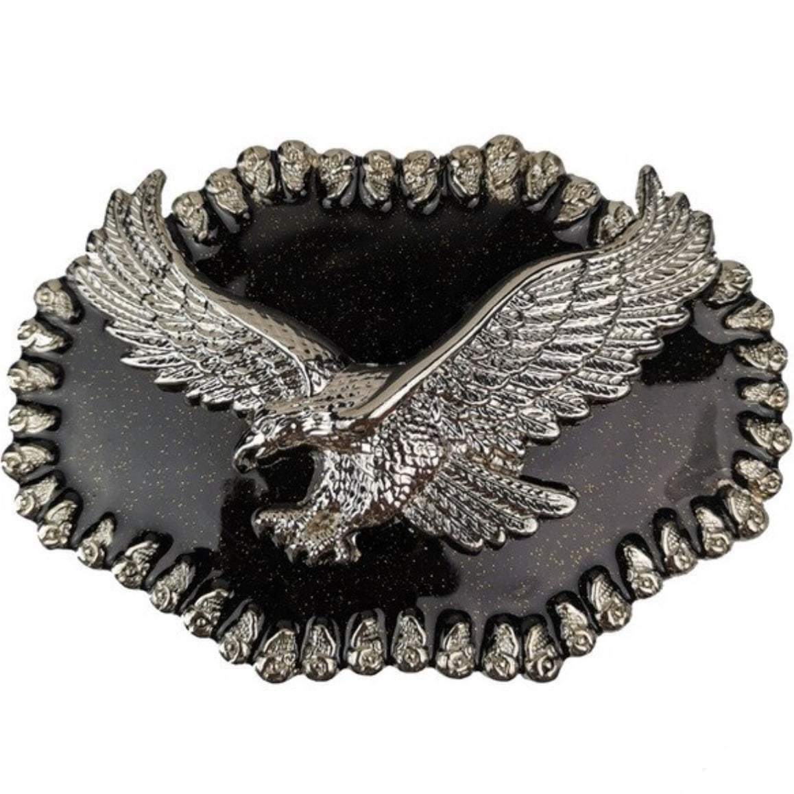 Den blændende country bæltespænde vil glæde naturelskere og dem der elsker store åbne vidder. Det forfinede mønster, der forestiller en ørn, minder om den majestætiske verden i det vilde vesten.