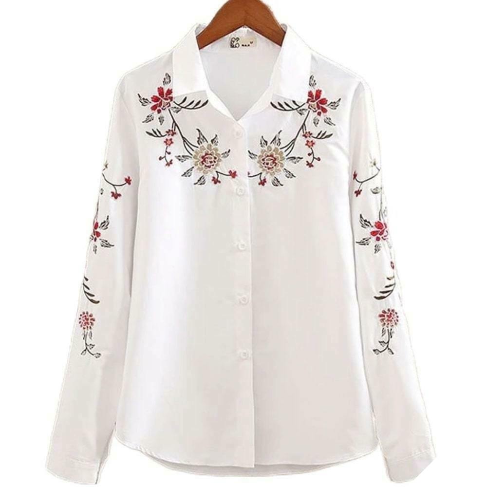 Den hvide cowboy skjorte til kvinder er en tidløs klassiker inden for country-western stil. Den adskiller sig charmerende og elegant med broderierne langs kraven og den forreste lomme. Et unikt model for entusiaster!
