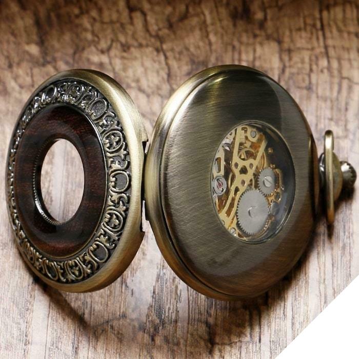 Det manuelle opvarmelige mekaniske tidsur er en model, der kombinerer autenticitet og elegance med en cowboy-stil. Lavet af rustfrit stål, skiller denne ur sig ud med sine raffinerede graveringer og indlagte træ.