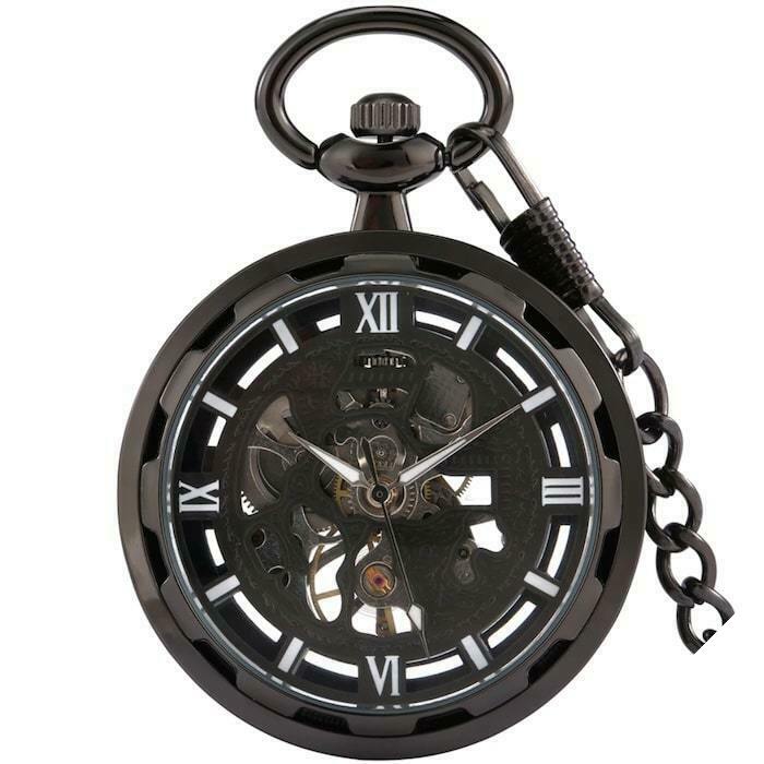 Moderne mænds lommeur er et model med en uovertruffen elegance. Den er designet med et rustfrit stålkabinet og adskiller sig med sin unikke struktur og karakteristiske titanfarve. Med en mekanisk bevægelse afslører uret sit hjerte og vil glæde ureelskere.