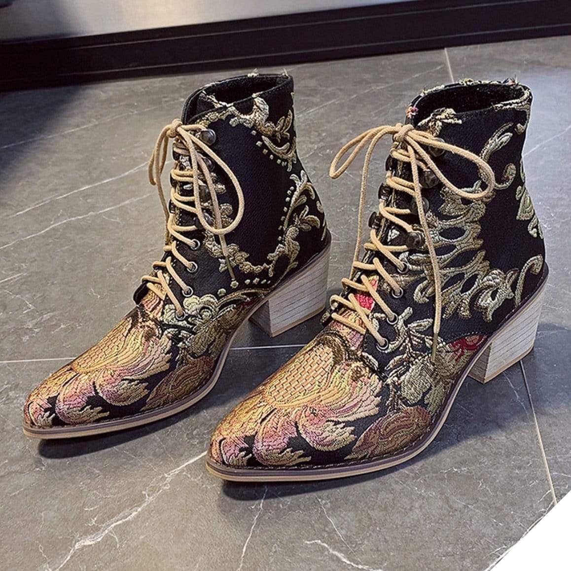 Dame Original Country Støvler tilbyder en unik og feminin western-udseende design. Disse håndlavede støvler skiller sig ud med deres gyldne blomstermønstre, der med charme og elegance minder om det country-look.