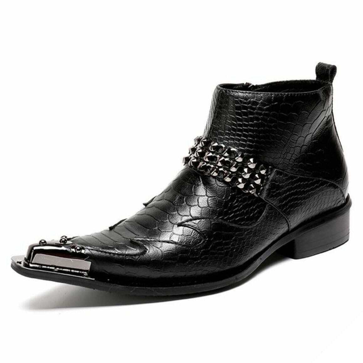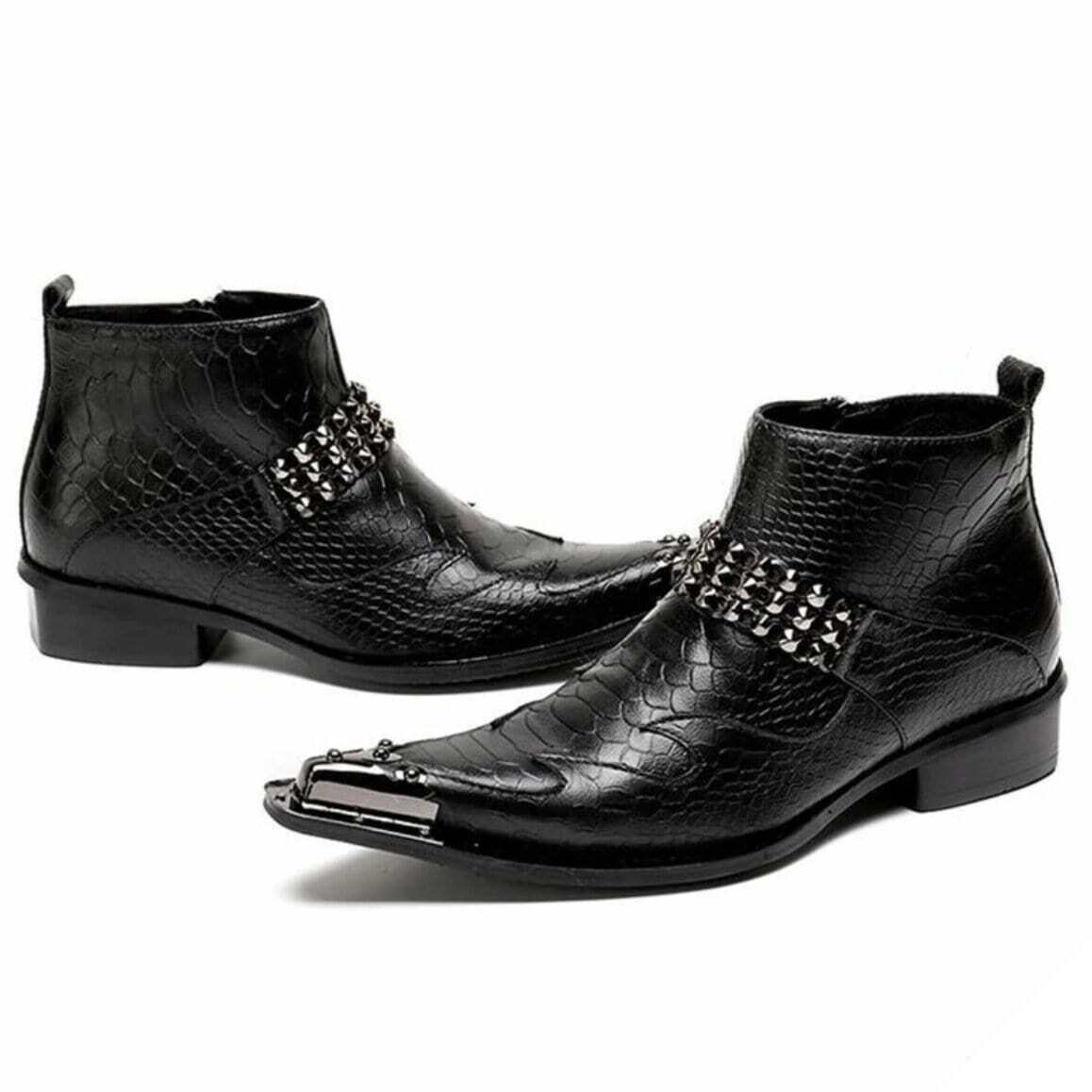 De sorte cowboy-støvler med indgraverede mønstre er et karakteristisk eksempel på western-stilen. Håndlavet med ægte læder, der er bearbejdet for at give en slangeskinds-effekt, vil disse støvler bringe glæde til enhver western-entusiast.