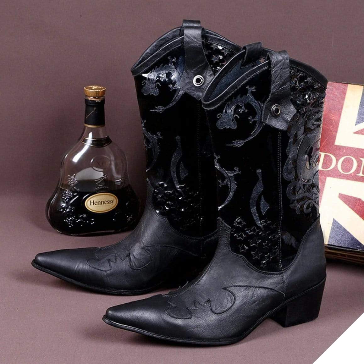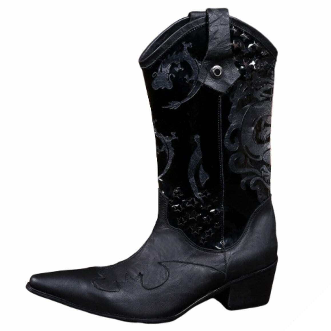 - Cowboystøvler med detaljerede afslutninger.