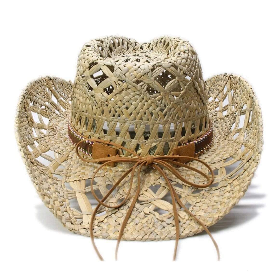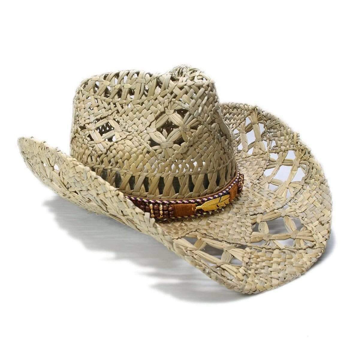 Cowboy-hatten af halm “fjer” repræsenterer let og harmonisk den ultimative western-stil. Den karakteristiske form på denne hat kan tilpasses med en ægte cowboy-stil læderstrop.