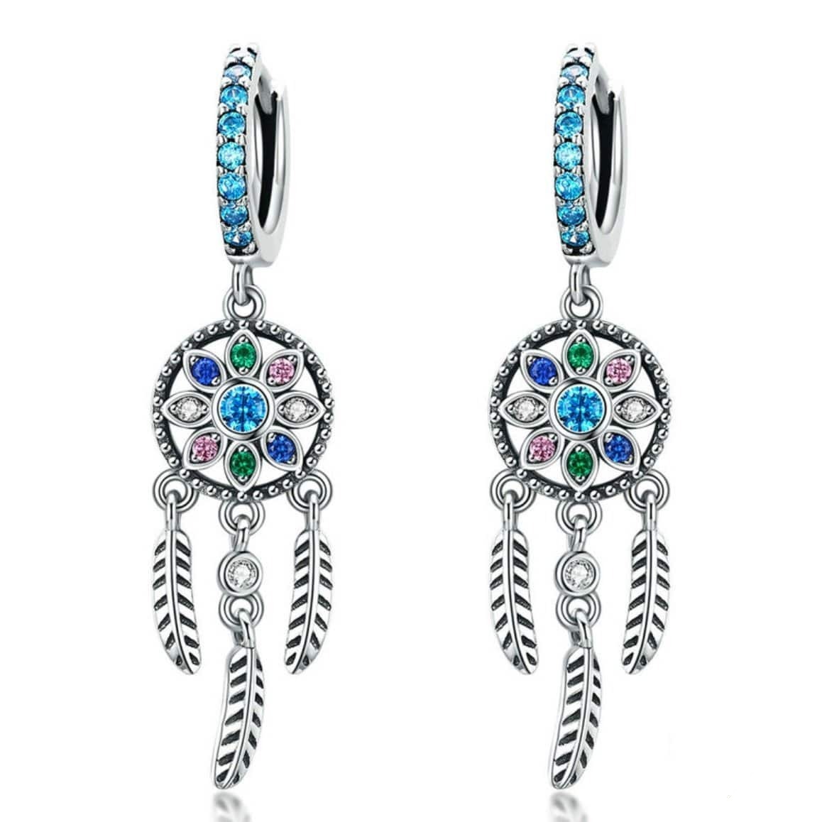 Øreringe af turkis drømmefanger fremhæver på en unik måde country-temaet. Lavet af ægte 925 sterlingsølv skiller de sig ud med charme og elegance takket være deres harmoniske farver og raffinerede detaljer.