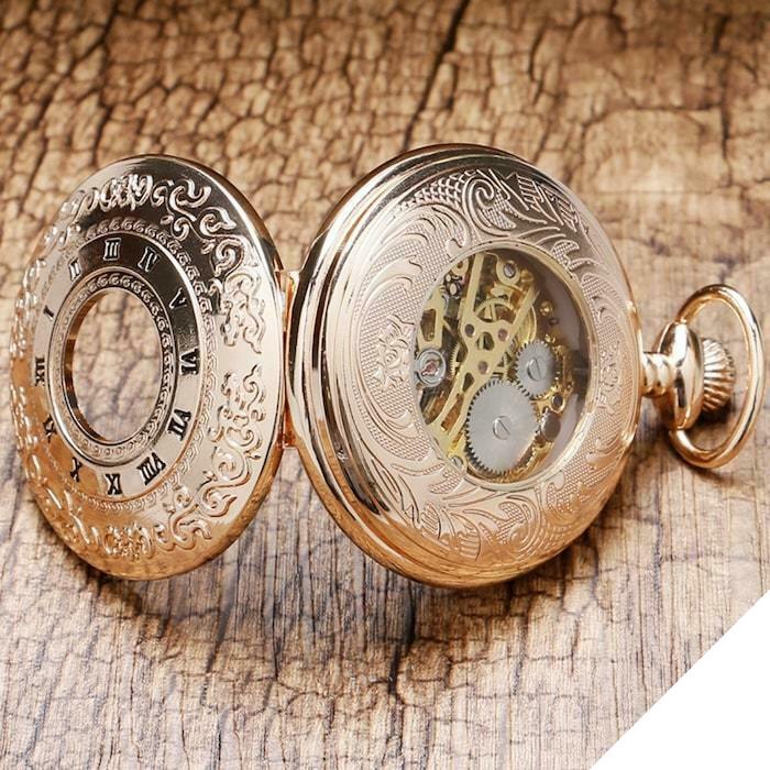 Taskeur vintage lommeur er en autentisk og original model med et western udseende. Den er lavet af rustfrit stål og skiller sig ud med sine forfinede tandhjul og mønstre, der garanterer en unik vintageeffekt.