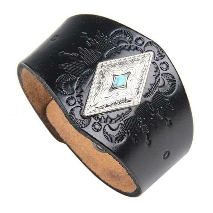 Dette raffinerede og elegante armbånd fås i sort og brun for at skabe en personlig western-stil.