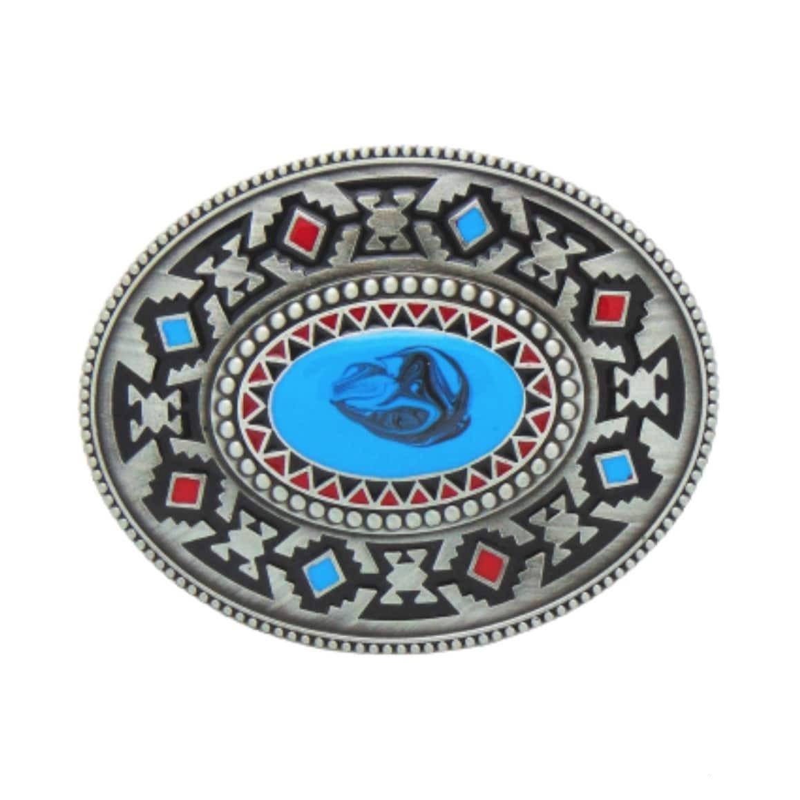 Det vestlige stil Amérindian bæltespænde symboliserer stilfuldt Wild West-universet. Designet med høj detaljeringsgrad fremhæver det mange farver, der er karakteristiske for Amérindian-universet.