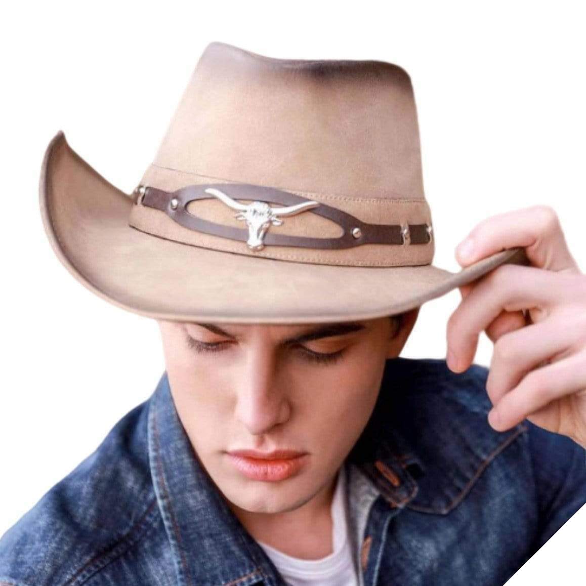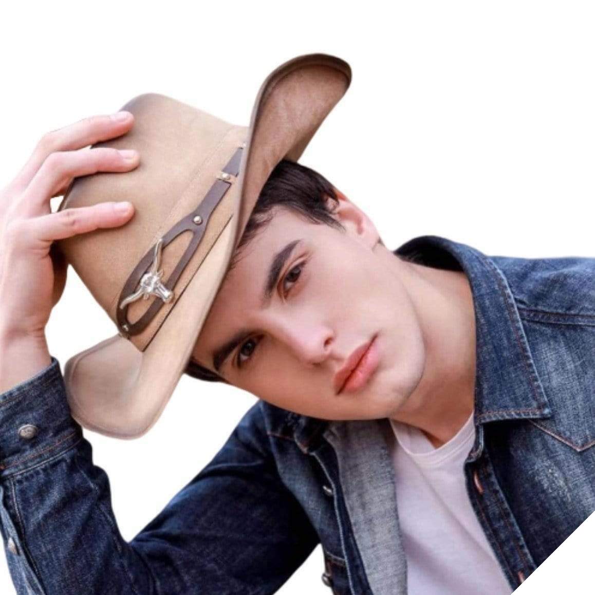 Den vestlige læderhat er et karakteristisk emblem for cowboy-stilen. Dens unikke former, sammen med en rem med en ko-skalle, repræsenterer den amerikanske Vilde Vesten i al sin pragt. En ideel hat for western-entusiaster.