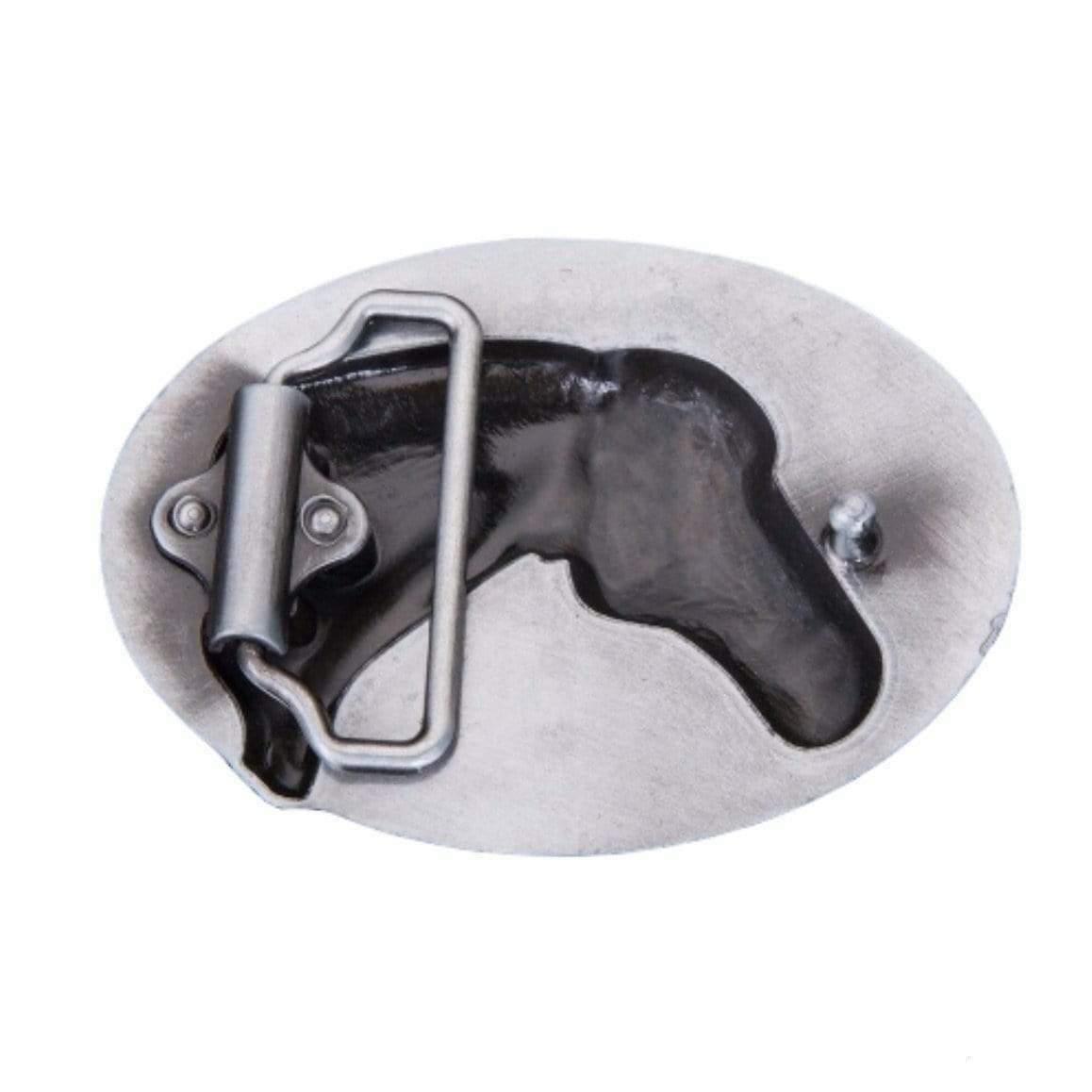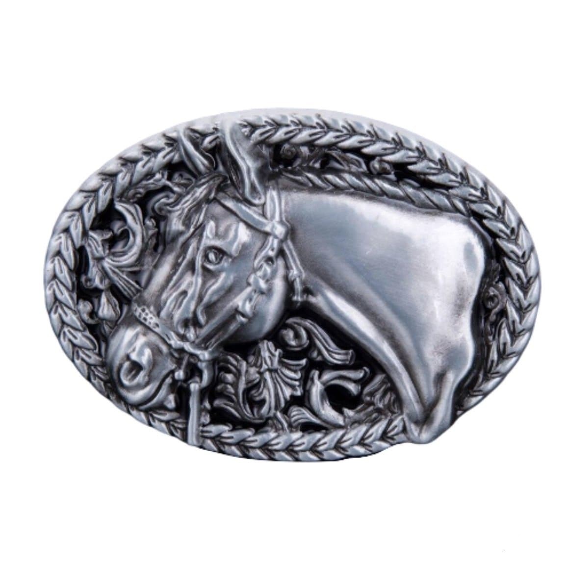 Den ovale western-stil bæltespænde er ideel til cowboy- og hesteentusiaster. Dens forædlede og tidløse tekstur vil ikke gå ubemærket hen blandt ryttere og country-fans.