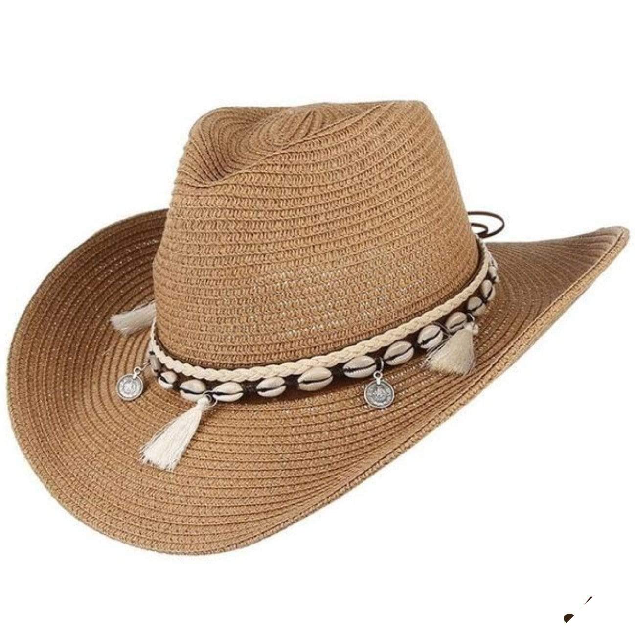Halm Western Hat afspejler cowboys og det vilde vesten. Dets paille-konstruktion og naturlige farver gør det til en simpel, elegant og unik hat.
