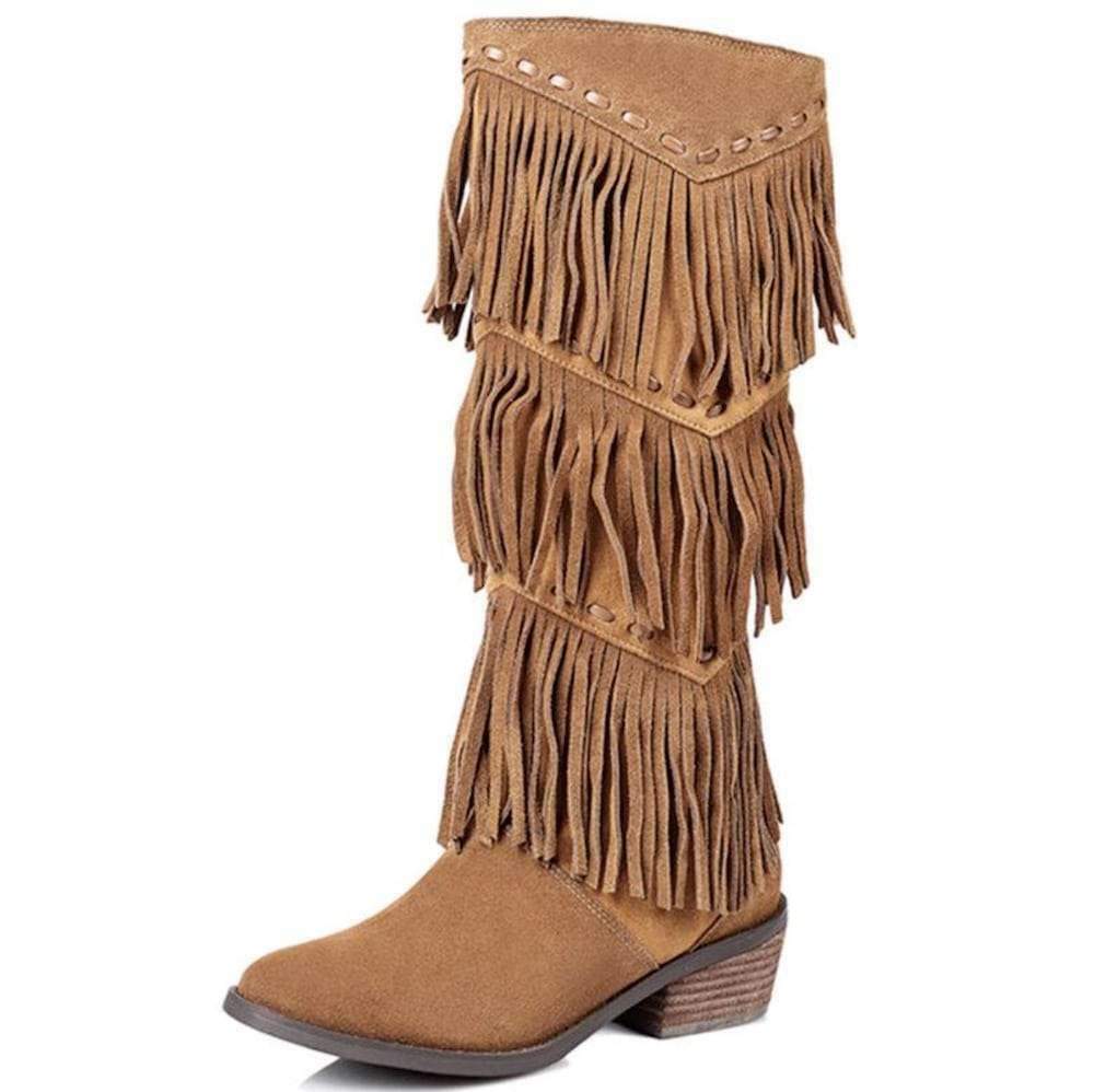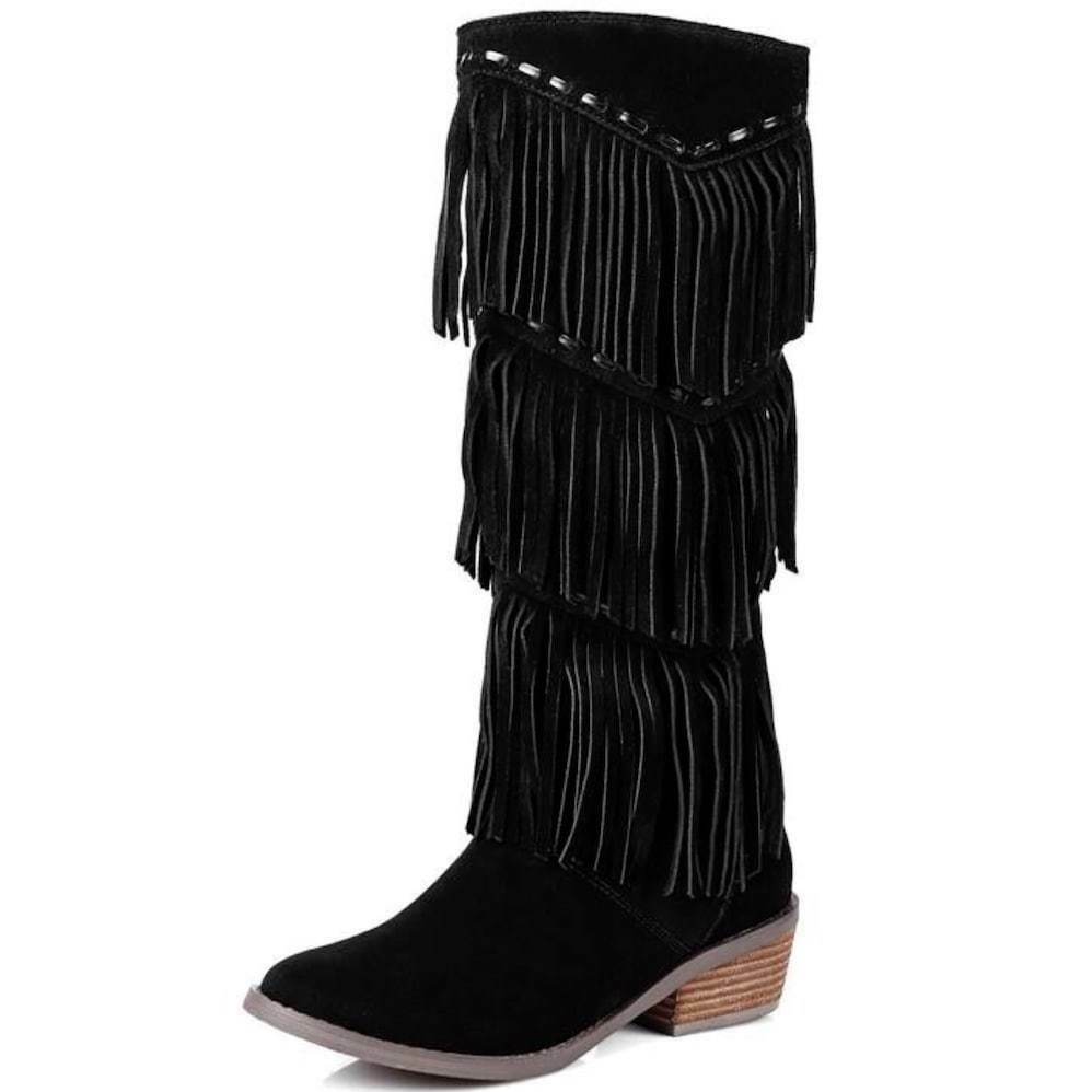 Kvinder Suede Western Støvler afspejler elegance og charme fra Wild West. Fremstillet af ægte premium læder, skiller de sig ud med deres frynser, som er karakteristiske for cowboy-miljøet.
