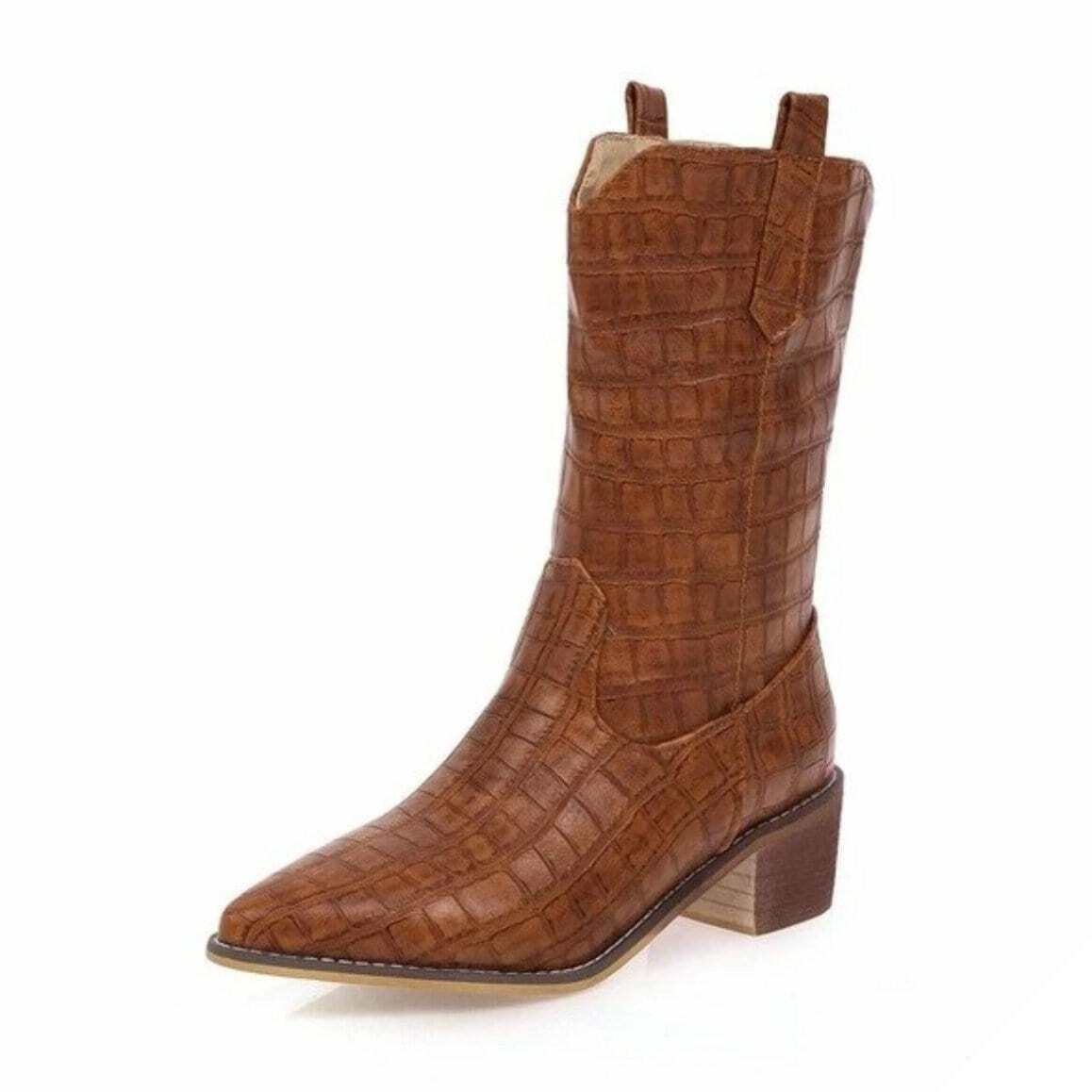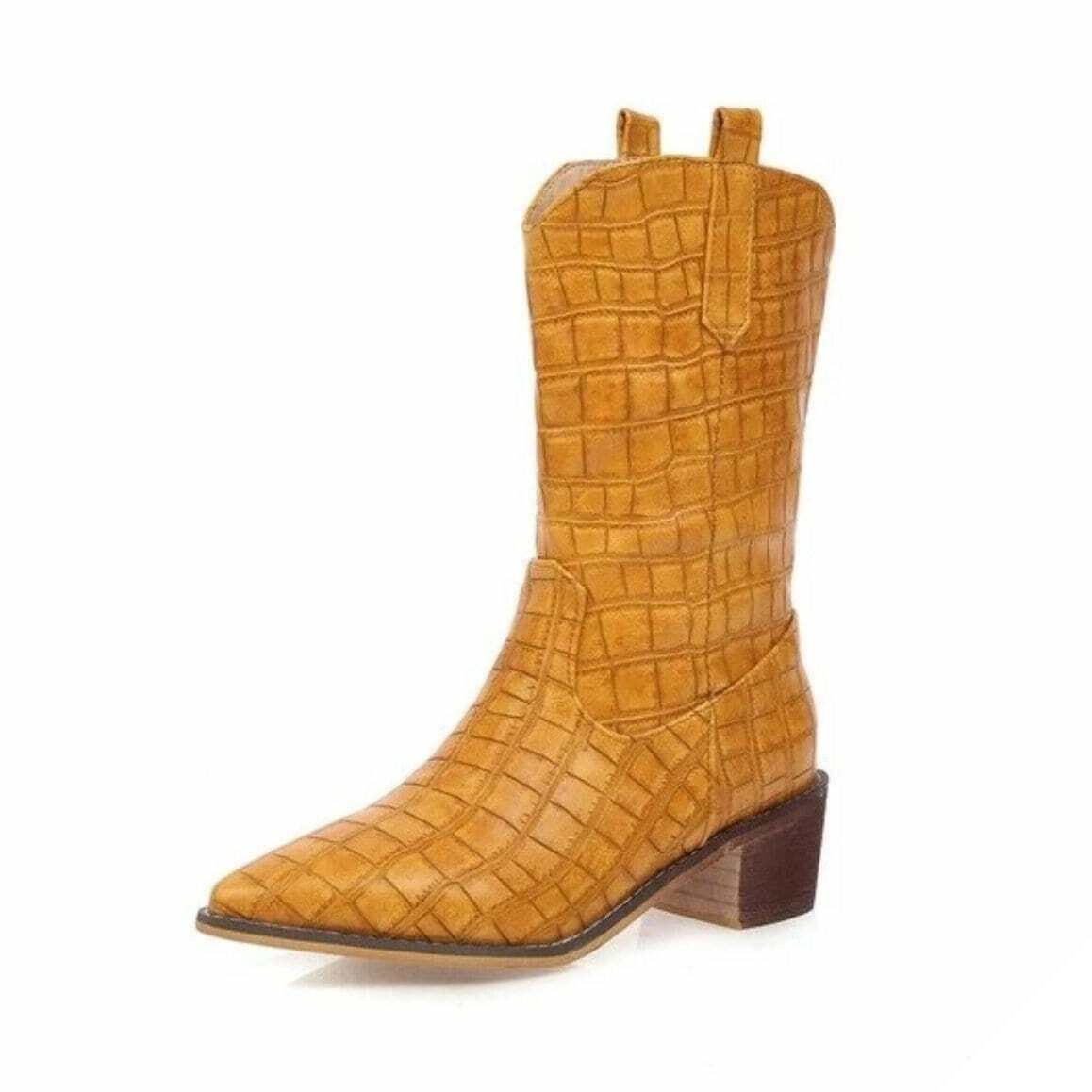 Dame vestlige støvler er en uundværlig del af det vilde vesten. Fremstillet i hånden af kunstlæder med krokodilleskindsmønster, skiller de sig ud blandt country-støvlerne.